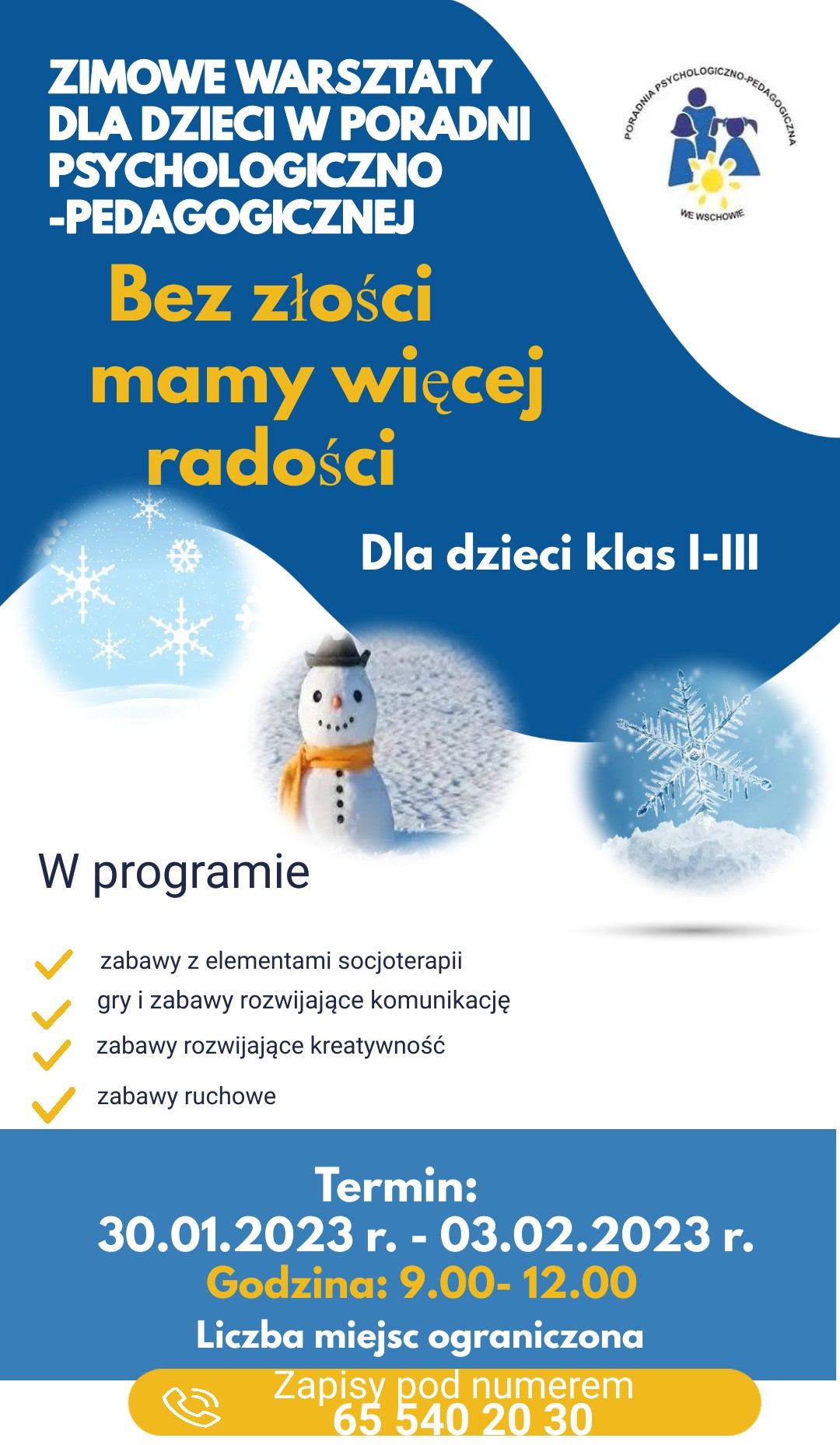 ZIMOWE WARSZTATY DLA DZIECI W PORADNI PSYCHOLOGICZNO -PEDAGOGICZNEJ
