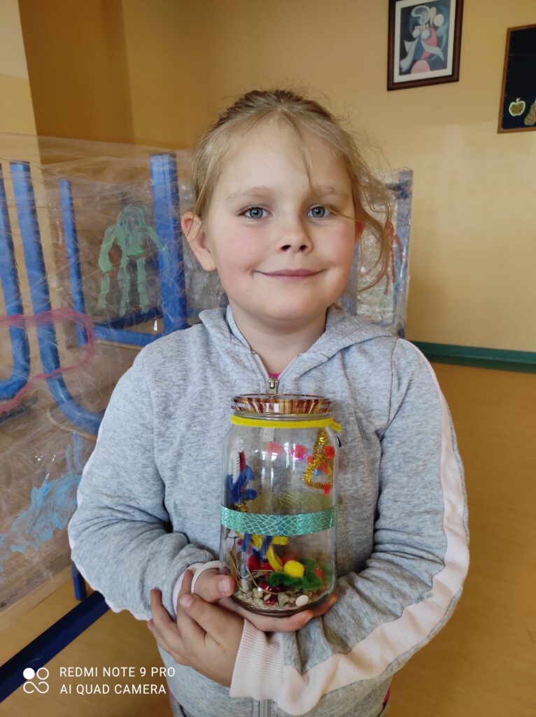 Bawiliśmy się najlepszą dziecięcą zabawką (własnoręcznie wykonaną) czyli slimami potocznie zwanymi glutami oraz gniotkami, a z tęsknoty za latem zrobiliśmy akwaria pełne kolorowych rybek.