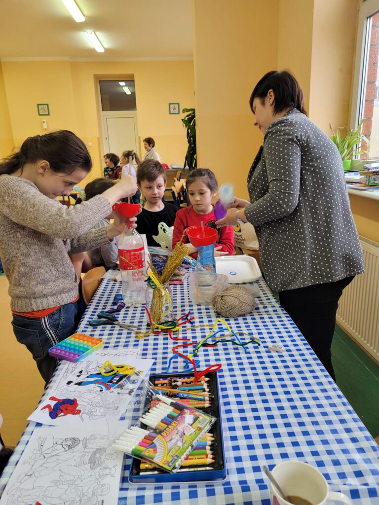W drugim tygodniu ferii na terenie Poradni Psychologiczno – Pedagogicznej odbyły się zajęcia dla dzieci. Poradnia zmieniła się na ten czas w bardzo kolorowe miejsce, gdzie można było zrealizować dziecięce marzenia o śniegu, bitwie na śnieżki (w naszej wersji papierowe) oraz wziąć udział w malowaniu pisakiem, budowaniu najwyższej wieży z klocków.